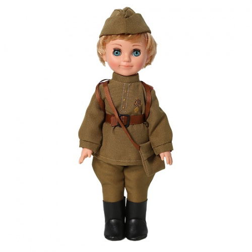 В комплект входит: гимнастёрка с вышитыми погонами и медалью, брюки галифе, пилотка, сумка и вещевой мешок из костюмной ткани; трусы; сапоги из искусственной кожи.