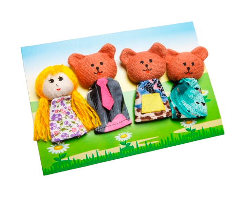 Персонажи, входящие в состав пальчикового театра «Три медведя», — 3 медведя, девочка.