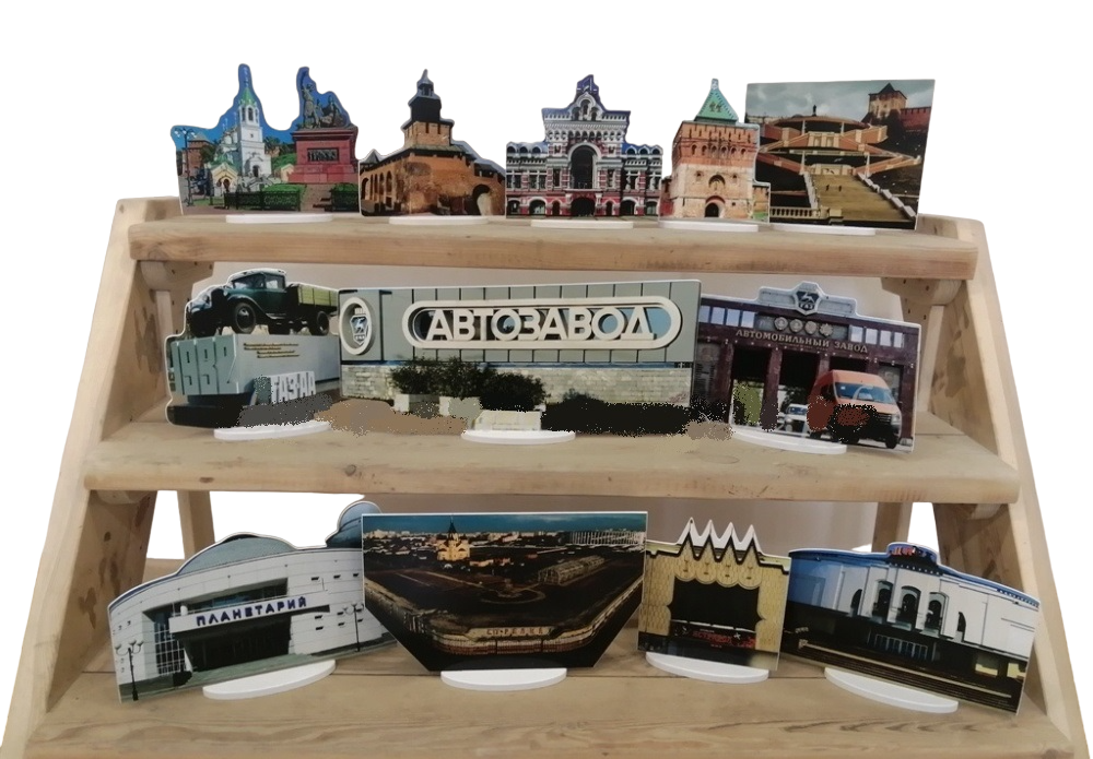 Комплект дидактических пособий "Достопримечательности Нижнего Новгорода" представляет собой набор настольных фигур, выполненных из ПВХ 4 мм, оснащенные устойчивым основанием из ПВХ 10 мм. Изображение достопримечательности нанесено с двух сторон фигурки.